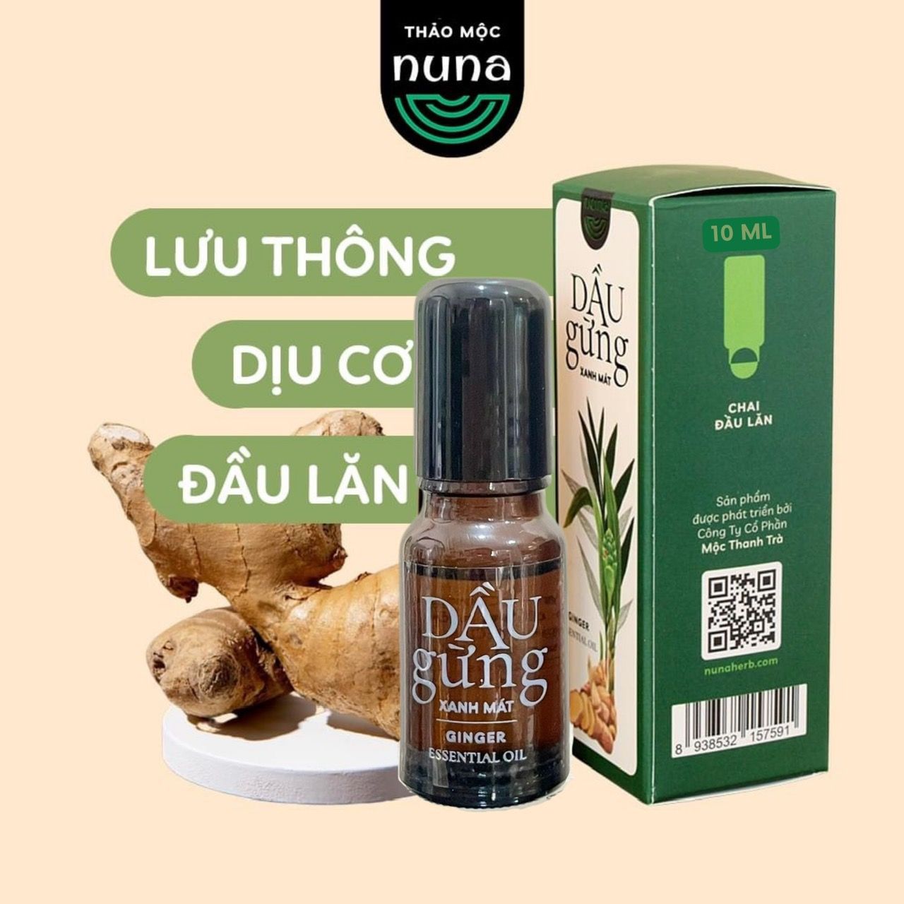 [10ML] Dầu Gừng Xanh Mát CHAI LĂN (Ginger Essential Oil ) Blend
