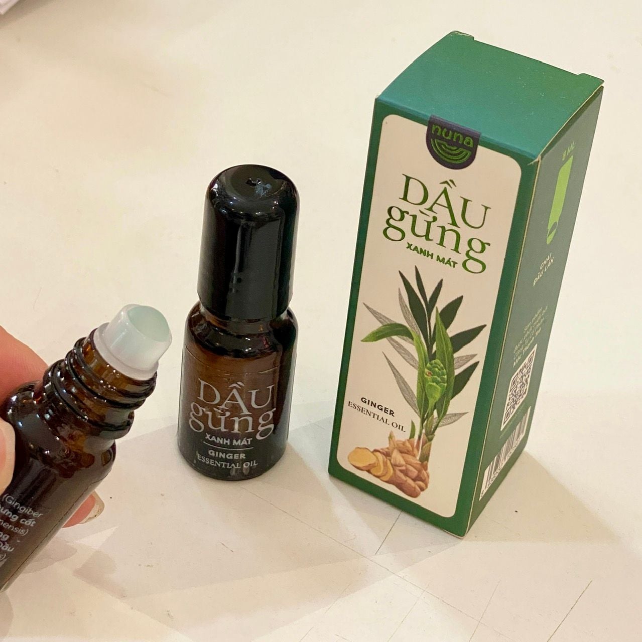 BỘ cộng hưởng Cao gừng - Dầu gừng chai 10ml (đầu lăn) thảo mộc Nuna, sản phẩm được phát triển bởi Công ty cổ phần Mộc Thanh Trà