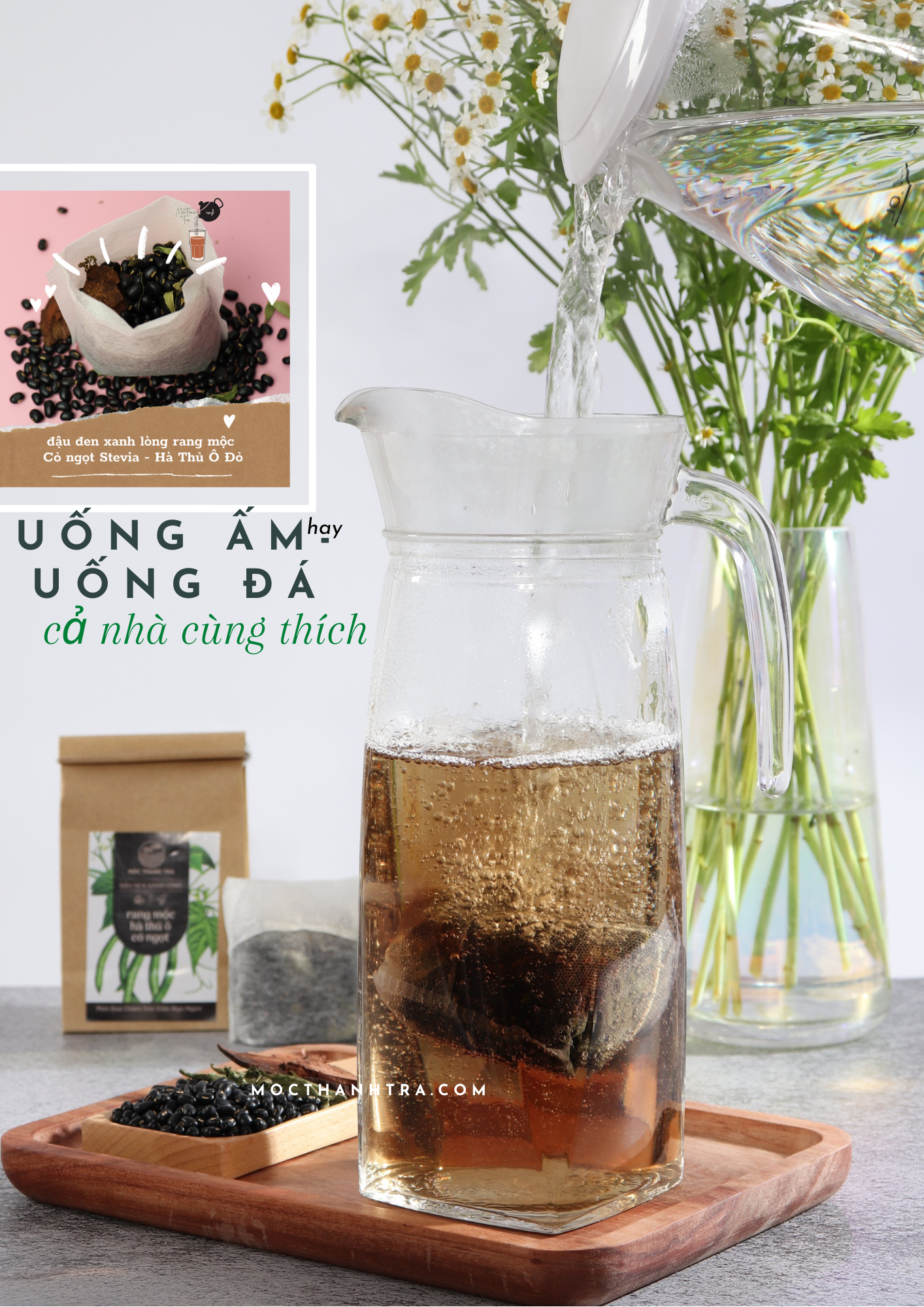 Đậu đen xanh lòng rang mộc - cỏ ngọt - Hà thủ ô [MỘC THANH TRÀ] uống đủ nước mỗi ngày, giúp ngủ ngon, chống mất nước và thanh lọc. điều hòa thân nhiệt