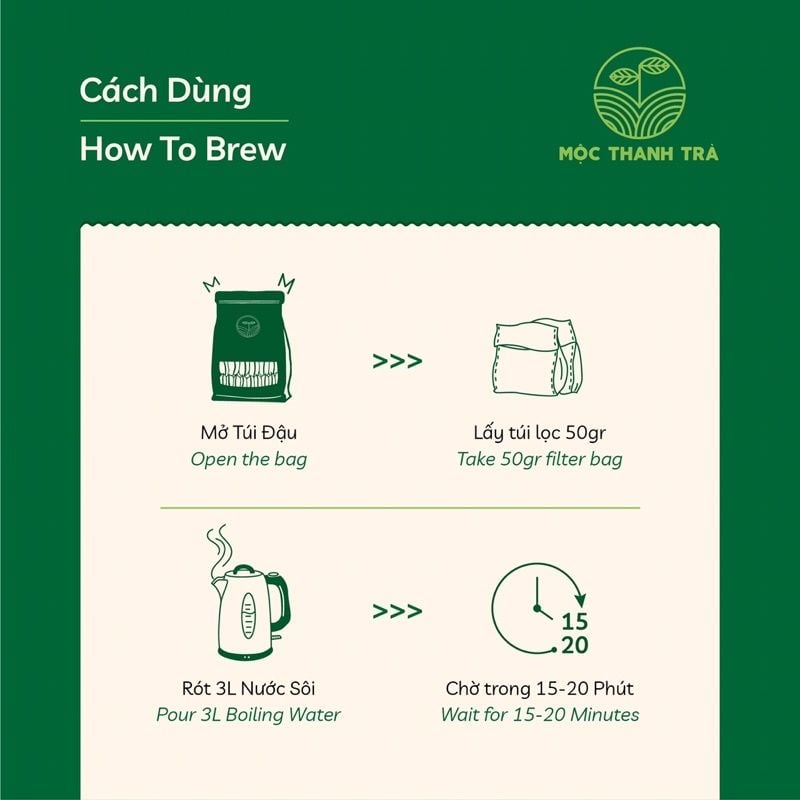 Đậu Đen Xanh Lòng Rang Mộc - Cỏ Ngọt - Hà Thủ Ô MỘC THANH TRÀ - Trà giải nhiệt, thanh lọc cơ thể, chăm sóc giấc ngủ ngon